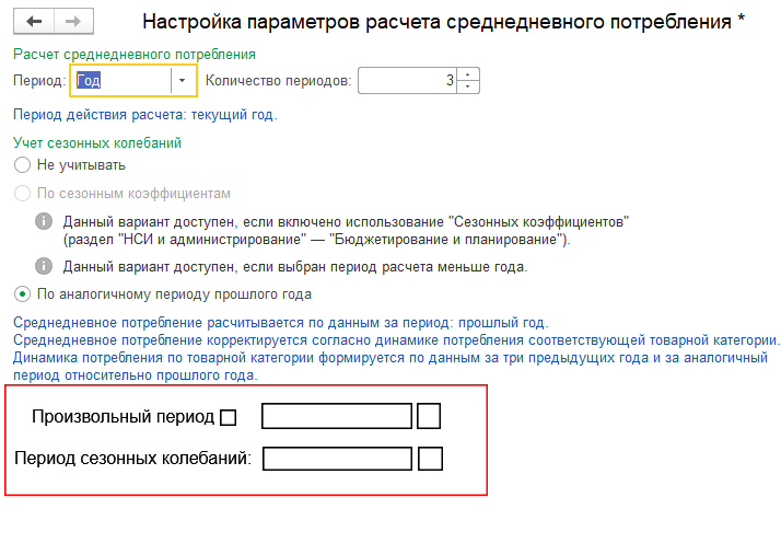 при использовании мастера «Формирования заказов по потребностям» штатно предусмотрен выбор одного периода (например прошлый месяц) нам необходимо чтобы была возможность выбора 2-х периодов, например с 01.09.2019 - 20.10.2019 и 01.12.2019-31.12.2019