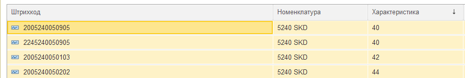 На данный момент в карточке товара для нужных размеров забиты по два ШК на одну характеристику. При печати ценников в случае двойного ШК по умолчанию вылезает ШК2(224...).
