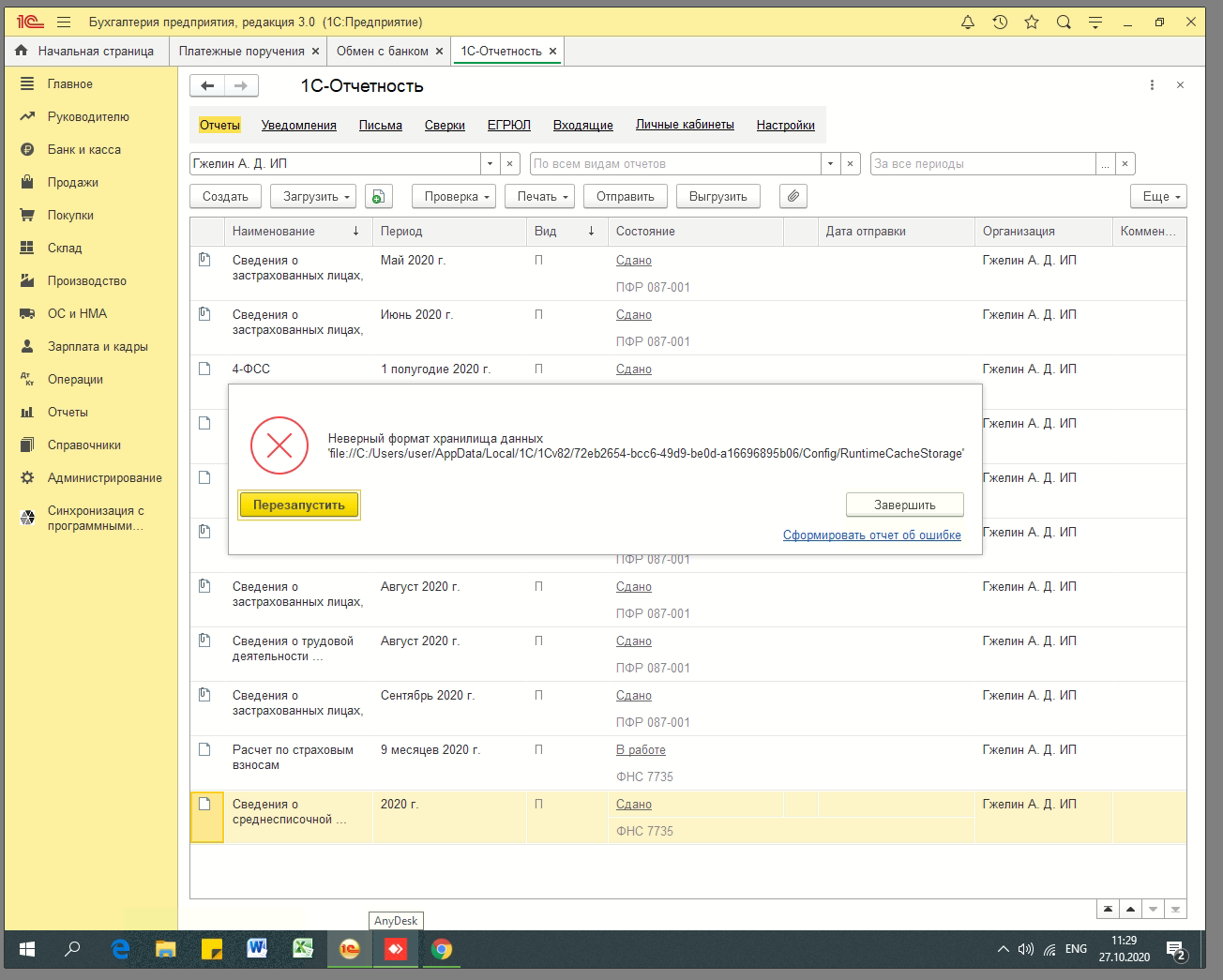 При попытке создать отчет, или произвести еще какие-то действия в 1с бухгалтерии появляется ошибка со скриншота.