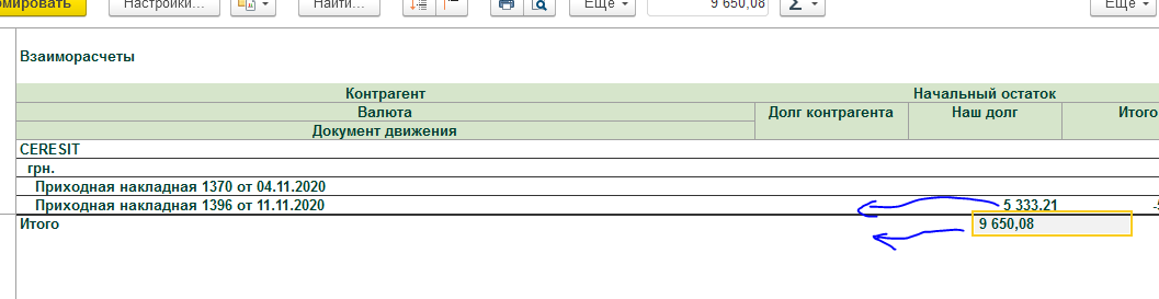 Был сделан отчет по взаиморасчетам для УНФ Украина