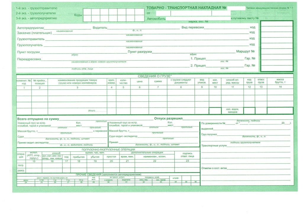Во вложении печатная форма товарно-транспортной накладной.
