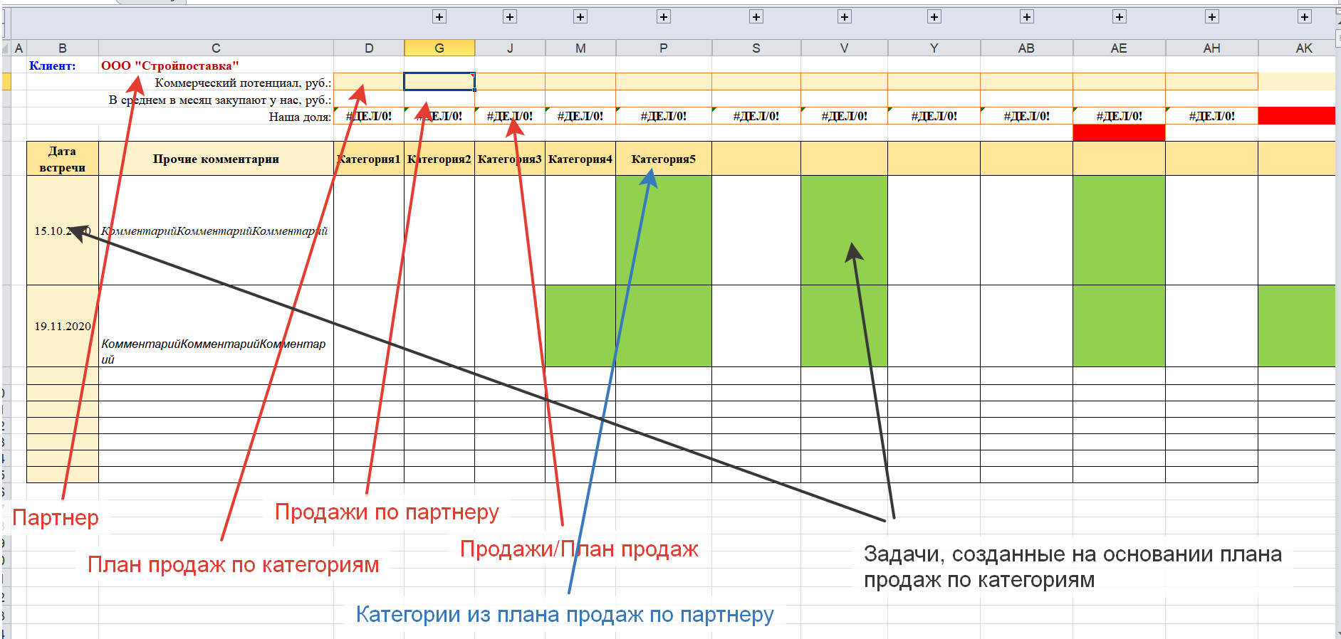 п. К каждому плану продаж (по партнеру), менеджеры время от времени ставят себе задачи, например, "Обсудить цены на категорию с партнером", дату выполнения и краткий комментарий. Требуется, при клике на строке(зеленый квадрат, если есть задача на дату) открывать эту задачу и просматривать. Детали обсуждаются.