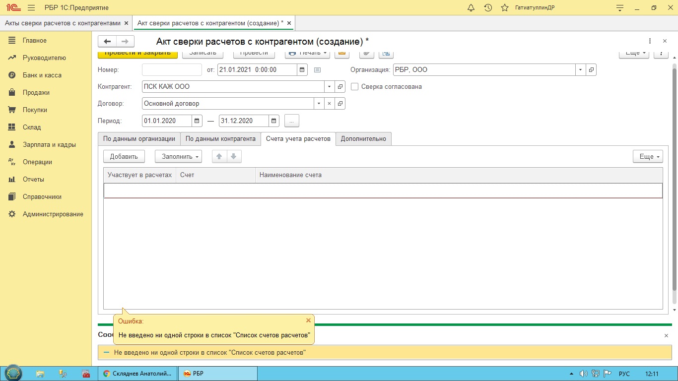 Ошибка при формирование акт сверок с контрагентами в 1С