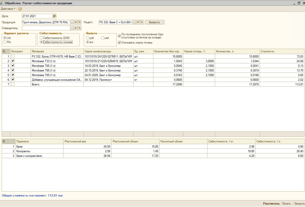 Заполнение первой табличной части из регистра себестоимость товаров(без и с доп расходами, в зависимости от настройки) по последней партии. Нормо-потери - реквизит номенклатуры.