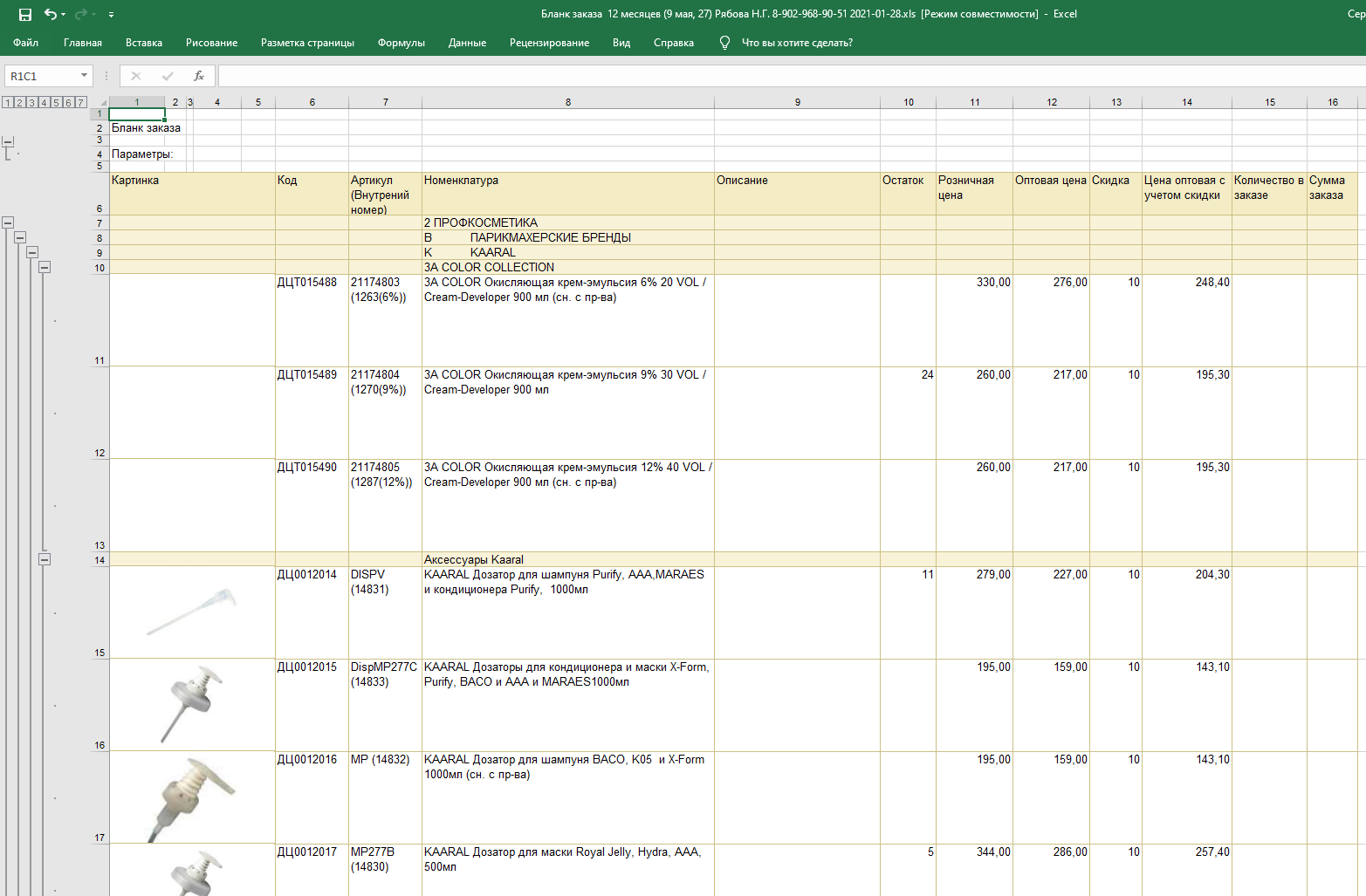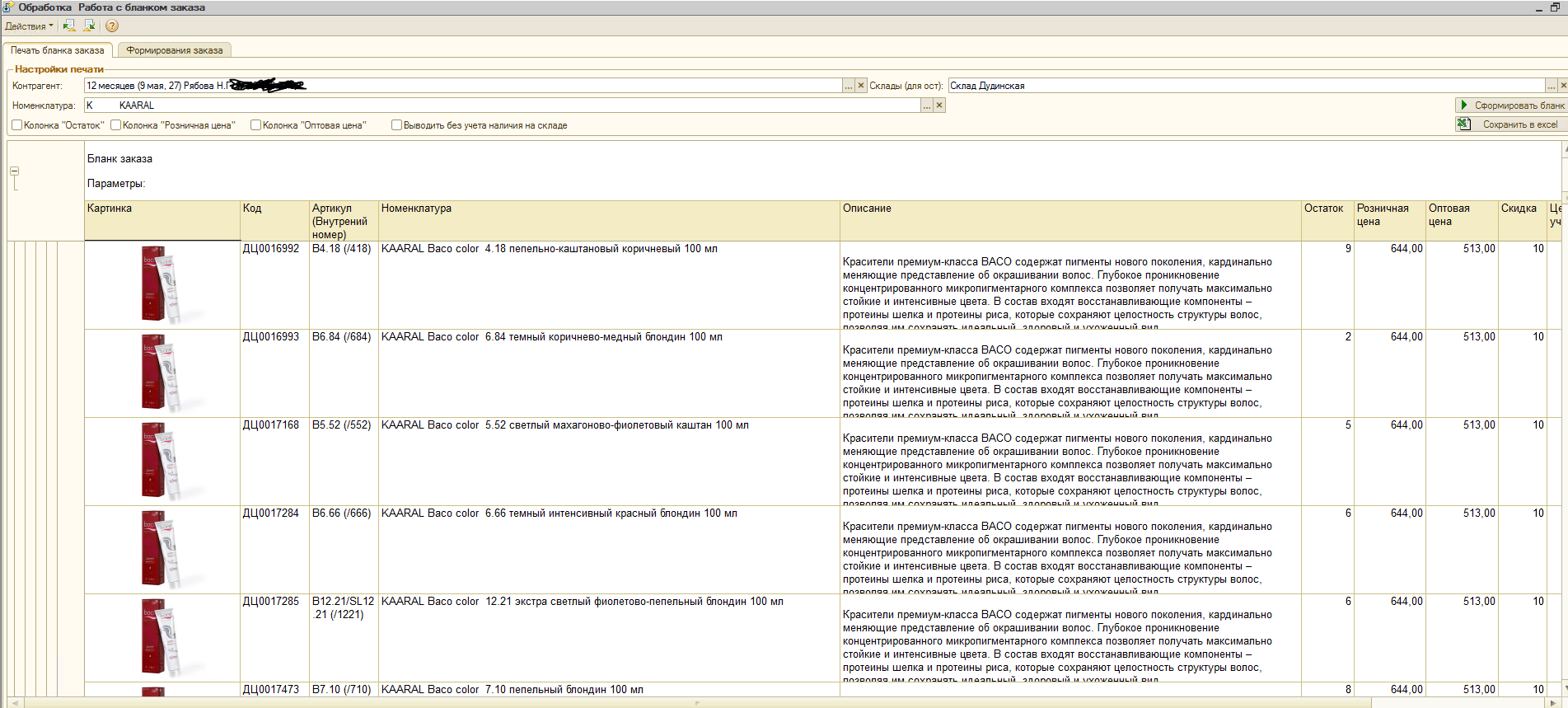 1. Выгрузка в Excel сформированного бланка-заказа - сделано