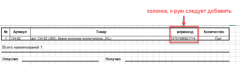 Добавить колонку "штрихкод" в печатную форму "расходная накладная" УТ...