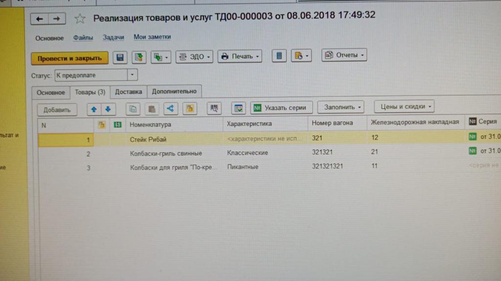 Итого: заводим в дополнительные реквизиты к документу «реализация товаров и услуг» дополнительный реквизит «номер вагона» и «жд накладная» , на выходе получаем через расширение: в табличной части заполнения документа «реализация товаров и услуг» колонки с заполнением добавленных дополнительных реквизитов, причём в документе может быть несколько строк с одной номенклатурой но разные веса (тонажи) и естественно разные номера вагонов на каждой строке. На выходе эти дополнительные реквизиты должны учитываться в отчётах типа «Ведомости по товарам на складах» (отчёт с выводом этих реквизитов)