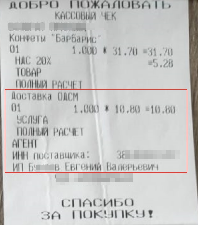 Признак расчета агента при печати чека ККМ для ПКО