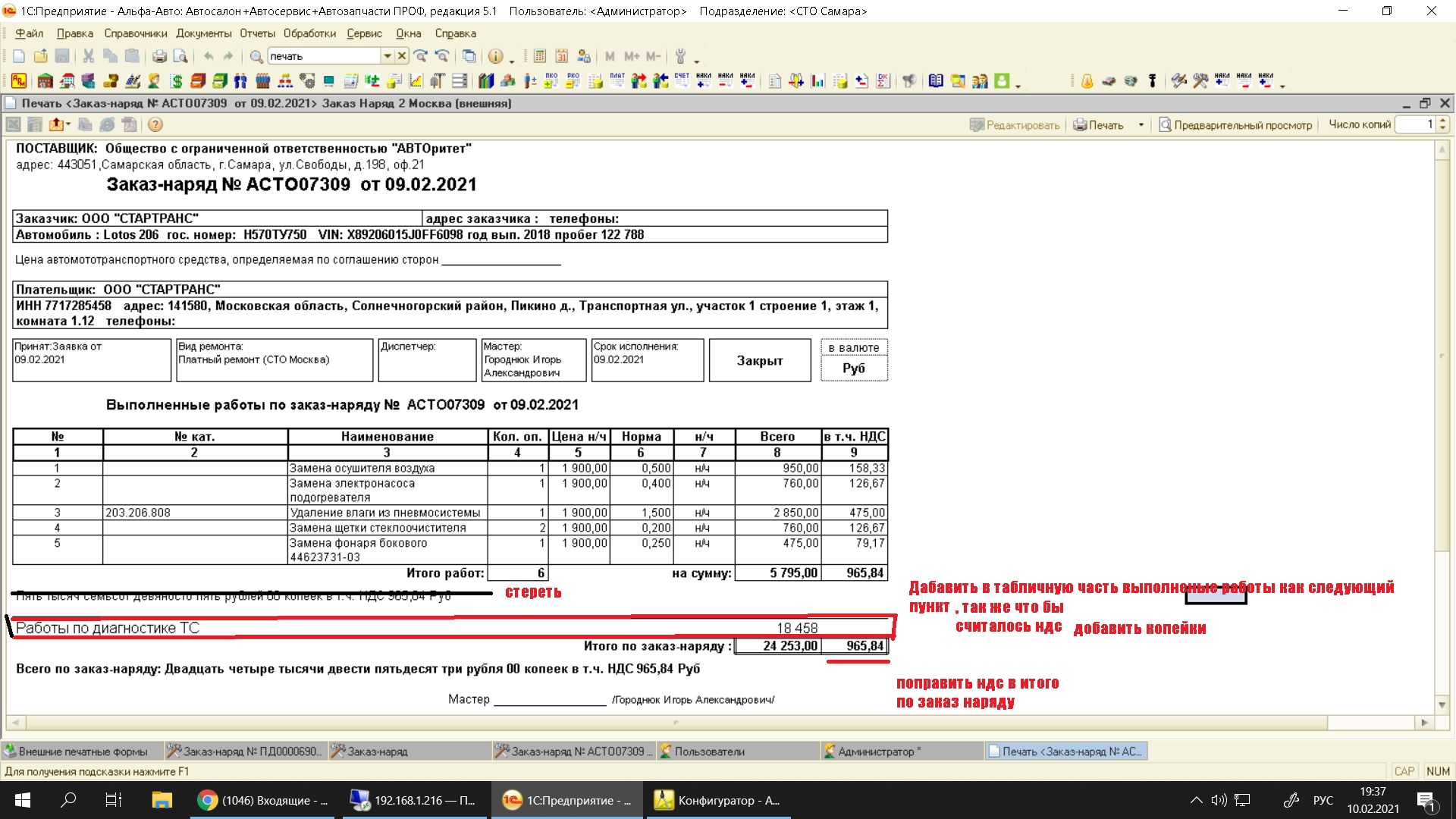 Отредактировать Внешнею Печатную форму Заказ Наряда для 1с Альфа Авто