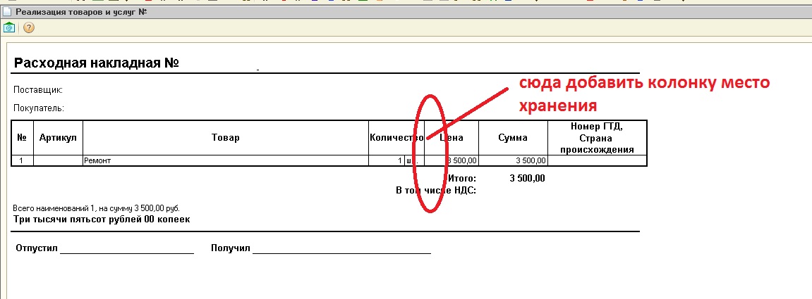 Нужно в этих формах после поля количество (до поля цена) вставить еще одну колонку и туда выводить место хранения товара.