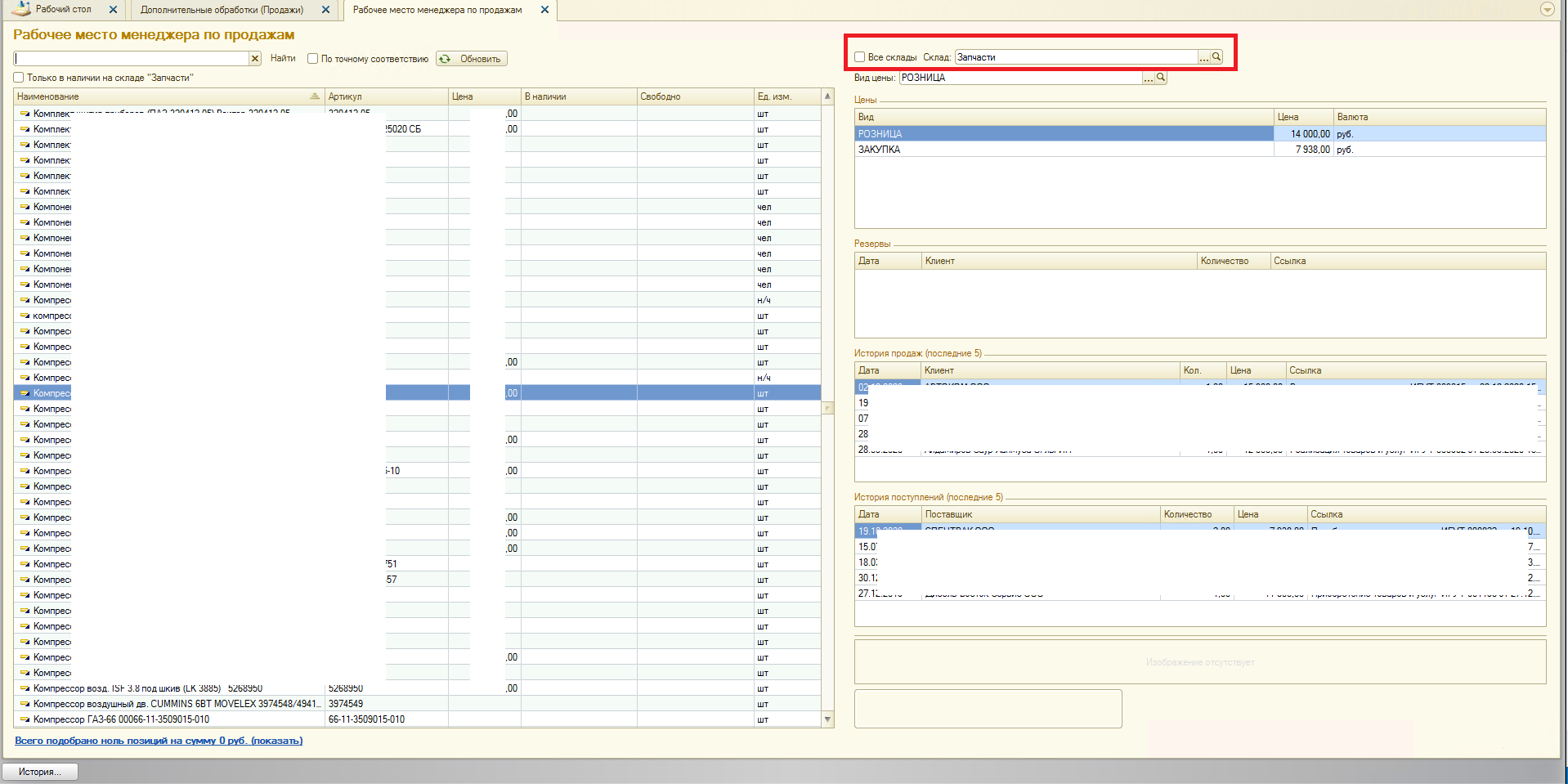 Нужно доработать внешнюю обработку "Рабочий стол менеджера" в части выбора складов.