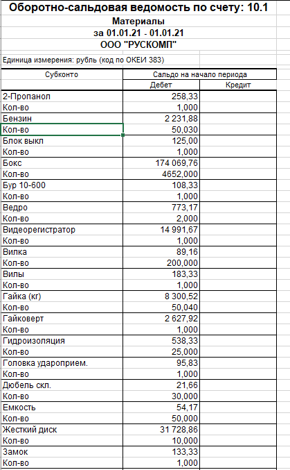 есть выгрузка в xls из семерки отдельно по 10 счету материалы и 41 счет товары. Образец выгрузки на скриншоте во вложении, могу выгрузить в другом формате.