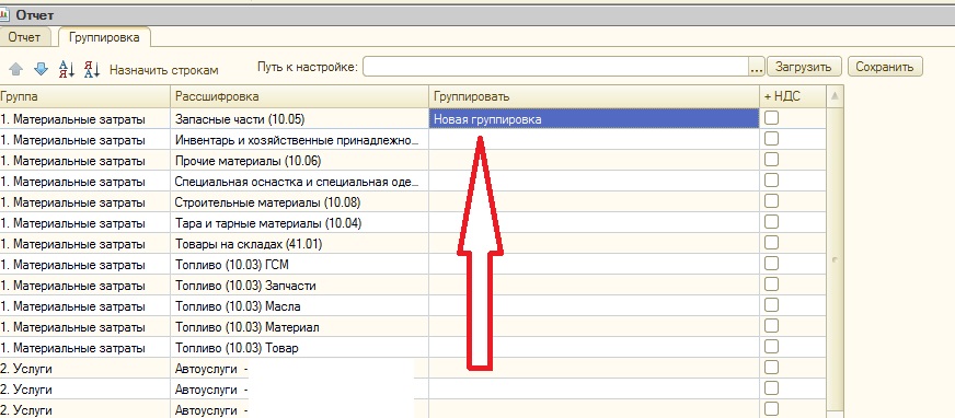 В отчете есть настройка группировок, я могу ввести группировку любую по наименованию и он сделает в табличной части отчета эту группировку с веденными мной данными. Но нам нужно сделать еще одну группировку которая будет главная (по иерархии) для предыдущей собственной группировки.
