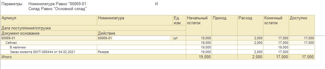 2. Если номенклатура в резерве, то какое количество в резерве.
