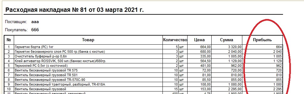 Здравствуйте. Была УТ 10, в нее добавили печатную форму расходной накладной с прибылью (печатается из реализации товаров и услуг). Эта форма такая же как штатная в 1с, только в нее добавлена колонка с прибылью. И в штатное печатной форме расходной накладной бала доработка- выводится вес, объем и задолженность контрагента. (во вложении - как это выглядит).