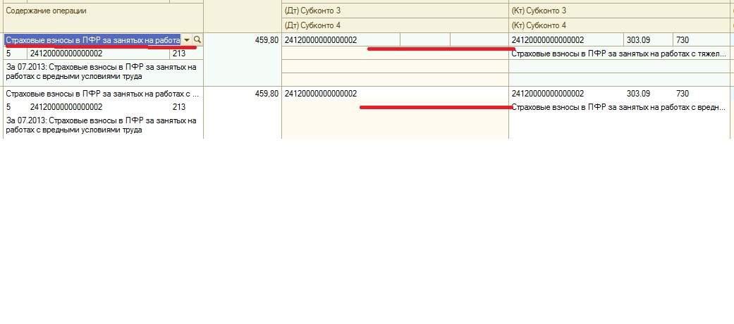 2. при обмене не проставляется счет Дт для операций "Страховые взносы в ПФР за занятых на работах с вредными условиями труда" и "Страховые взносы в ПФР за занятых на работах с тяжелыми условиями труда". Смотрите скриншот.