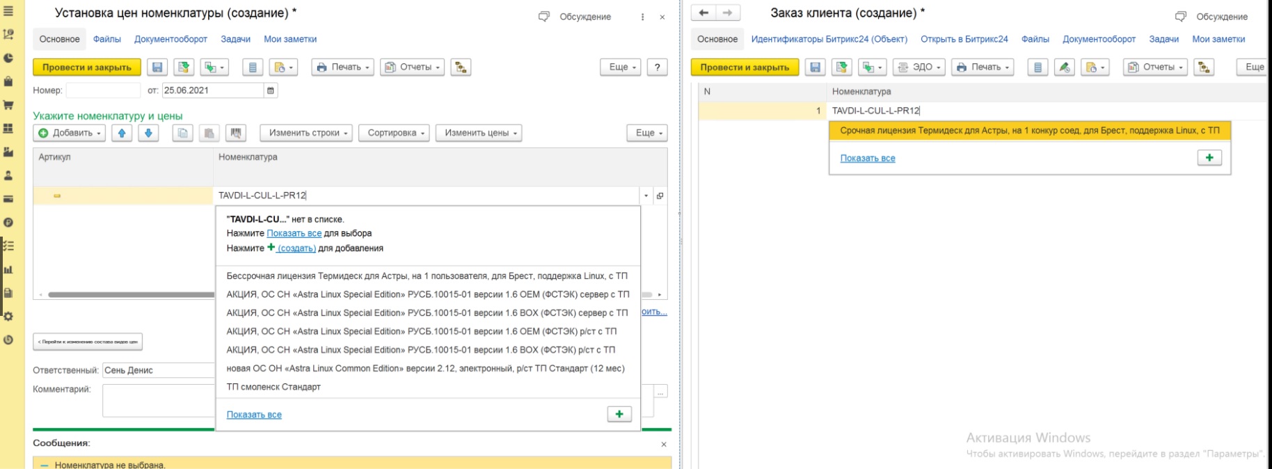 Необходимо сделать поиск одинаковым для обоих документов "Установка цен номенклатуры" и "Заказ клиента", за основу взять поиск из документа "Заказ Клиента"