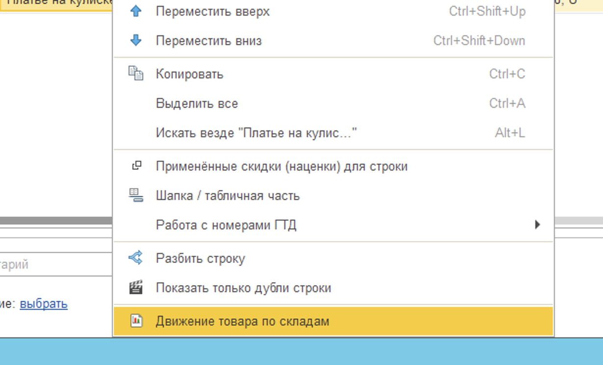Расширение добавляет кнопку на быстрое открытие отчета с предопределенными настройками в контекстное меню в Расходных/приходных и др. документах. (см. скриншот)