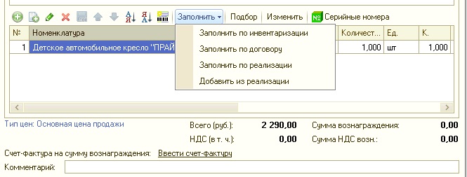 1. Документ "Отчет комиссионера о продажах" в нижней части документа где заполняются товары проданные комиссионером, нужно сделать возможность заполнения по перечню товаров находящихся на комиссии. Т.е. выходит список товаров которые есть на комиссии у данного контрагента и галочкой или щелчком отмечаем нужные которые перенесутся в табл.часть документа.