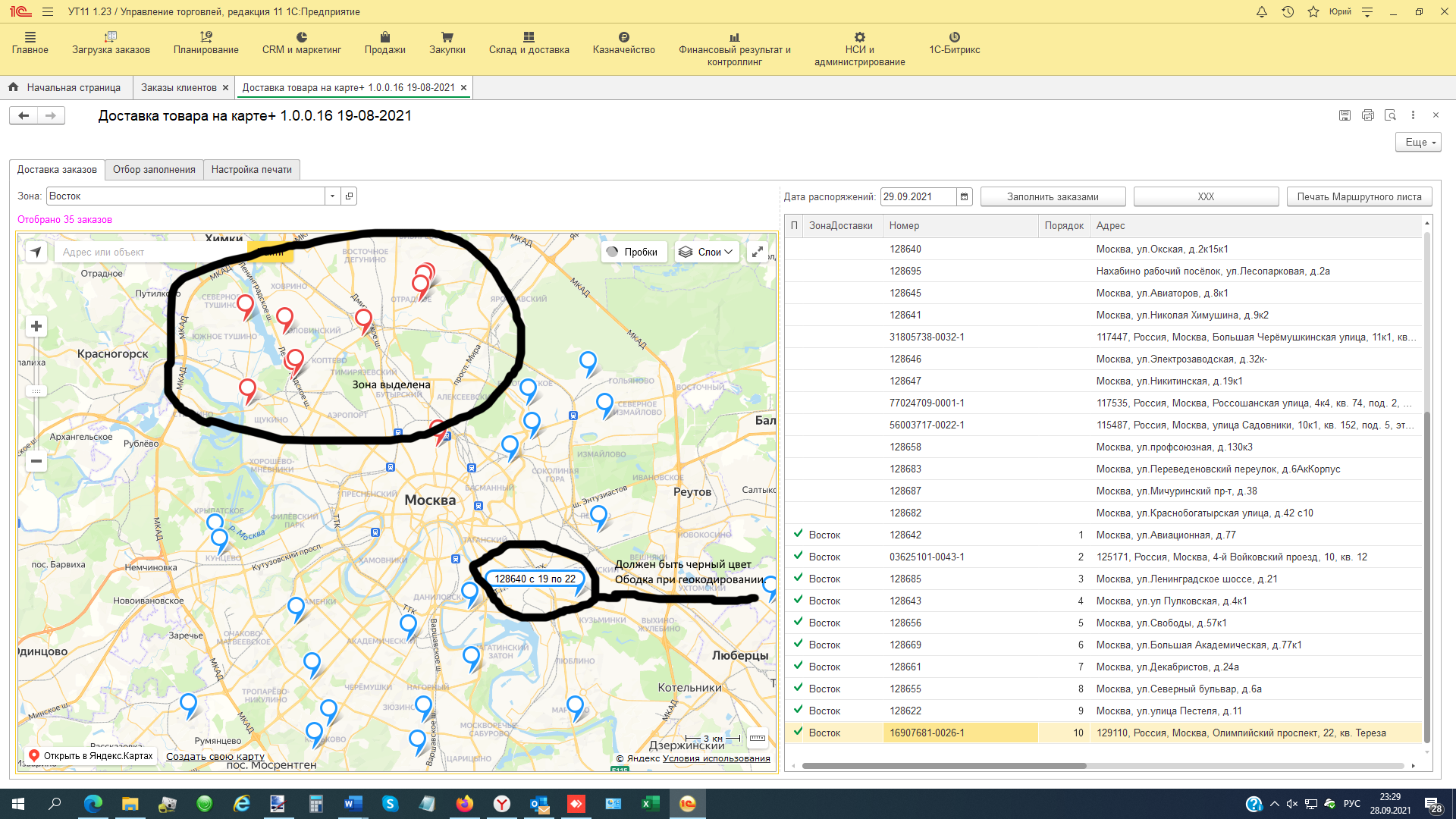 3) При выборе ЗОНЫ и отметки заказа на карте, нужен разный цвет метки для каждой зоны.