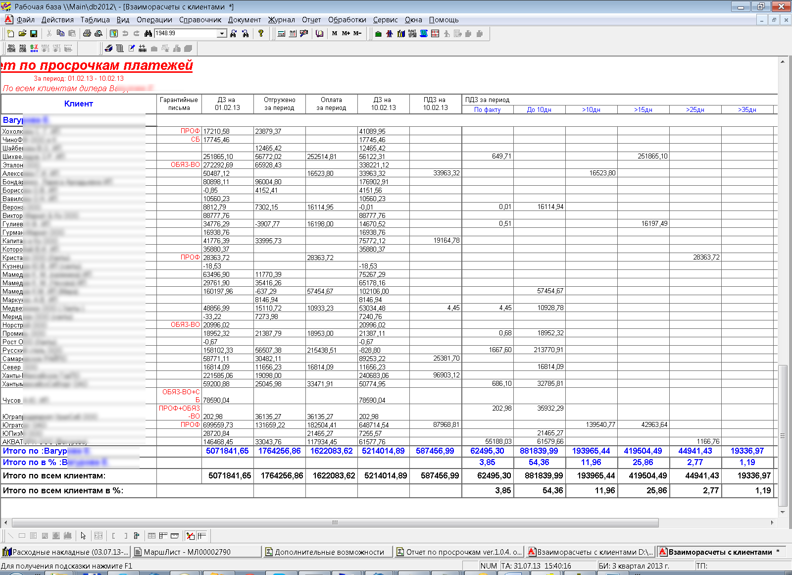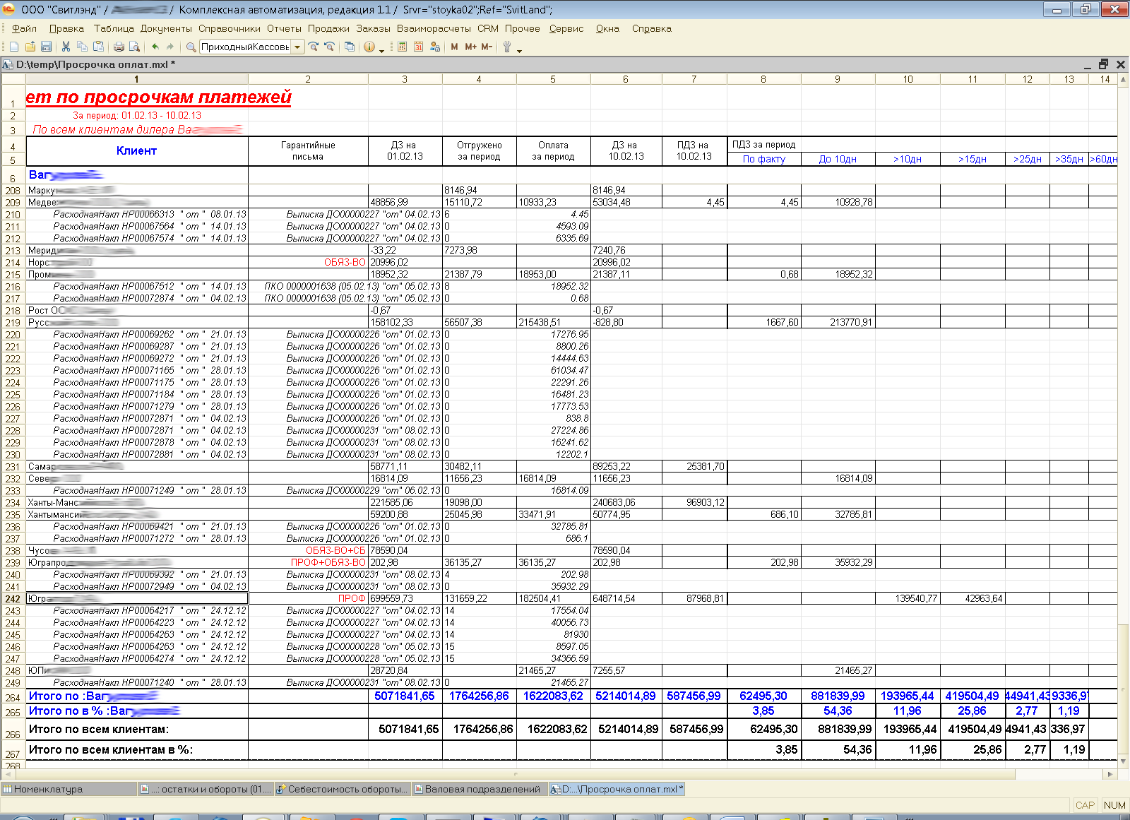 Отчет "просрочка оплат" для почти типовой конфигурации 1с82 (Комплексная автоматизация, редакция 1.1 (1.1.27.1) с небольшими доработками - конфу предоставим)