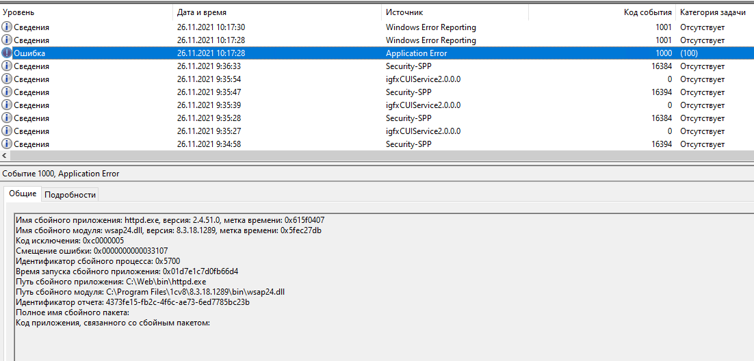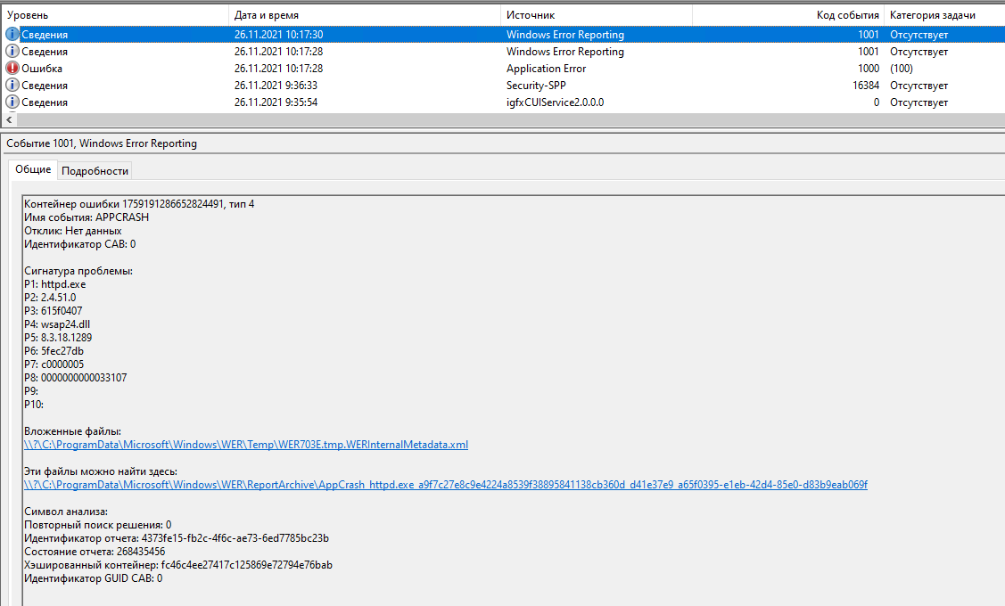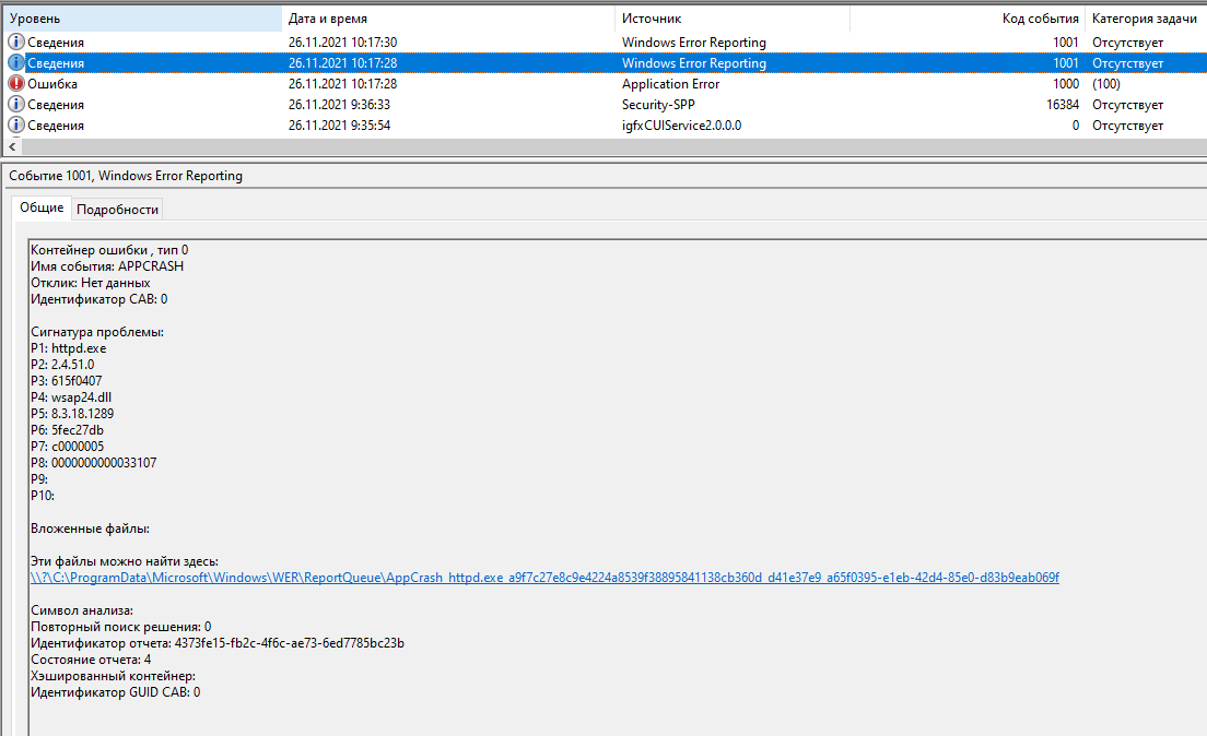 Имя сбойного приложения: httpd.exe, версия: 2.4.51.0, метка времени: 0x615f0407