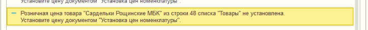 Появляются ошибки: Розничная цена товара не установлена, установите цену документом "установка цен номенклатуры". И не удалось провести документ.