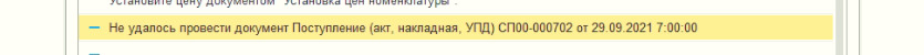 После этих ошибок, документы загружаются, но нельзя провести и потом слетают цены.