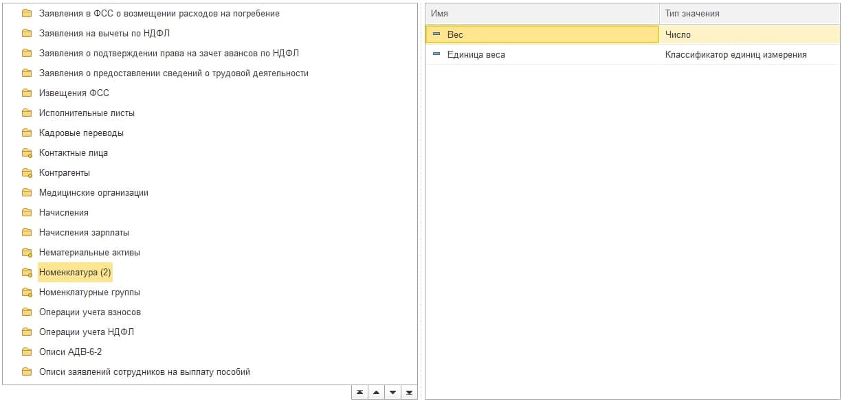 Вес - число, а Единица веса - классификатор единиц измерения.