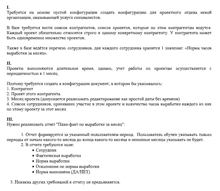 конфигурация с несколькими списками, документом, отчетом по выработке.