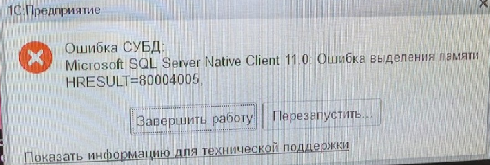 Microsoft SQL Server Native Client 11.0: Ошибка выделения памяти