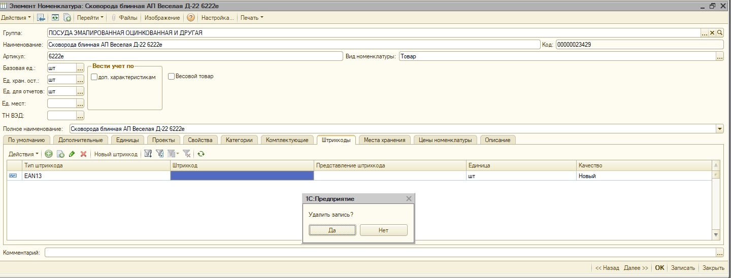Много карточке номенклатуры, содержащих пустой ШК (на скрине)