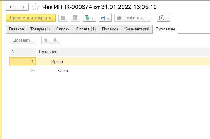 В документ ЧекККМ добавлена табличная часть продавцы (см рис во вложении).