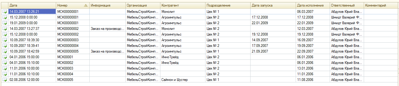 Обработка "Журнал заказов на производство". УПП 1.3