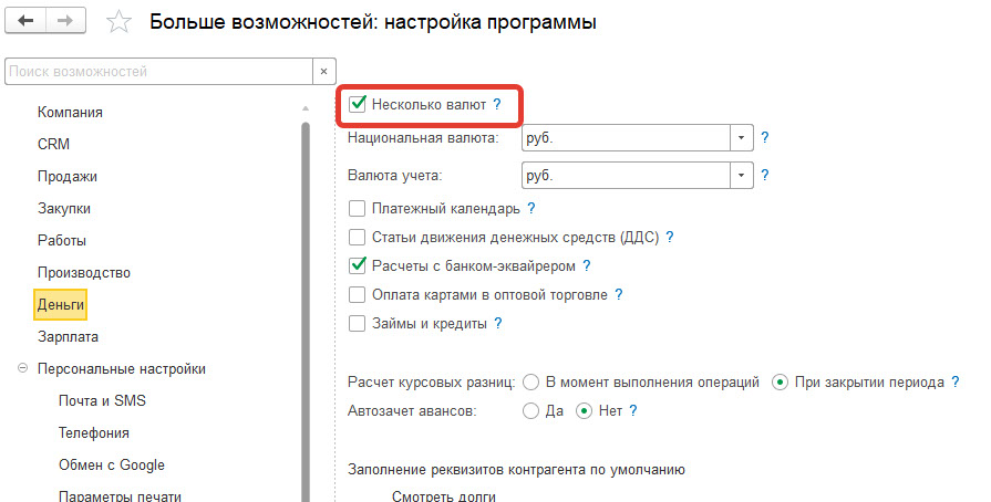 Перевести в 1С УНФ валюту управленческого учета из Руб в Евро