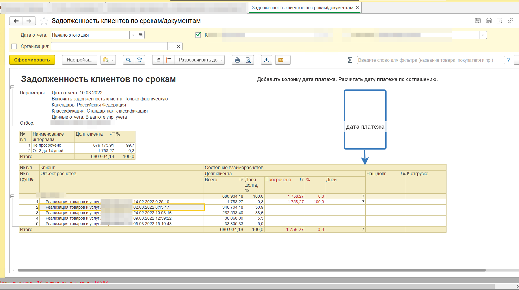 Требуется доработать отчет "Задолженность клиентов по срокам"