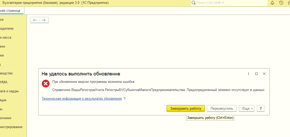 Бухгалтерия 3.0 базовая - при обновлении ошибка