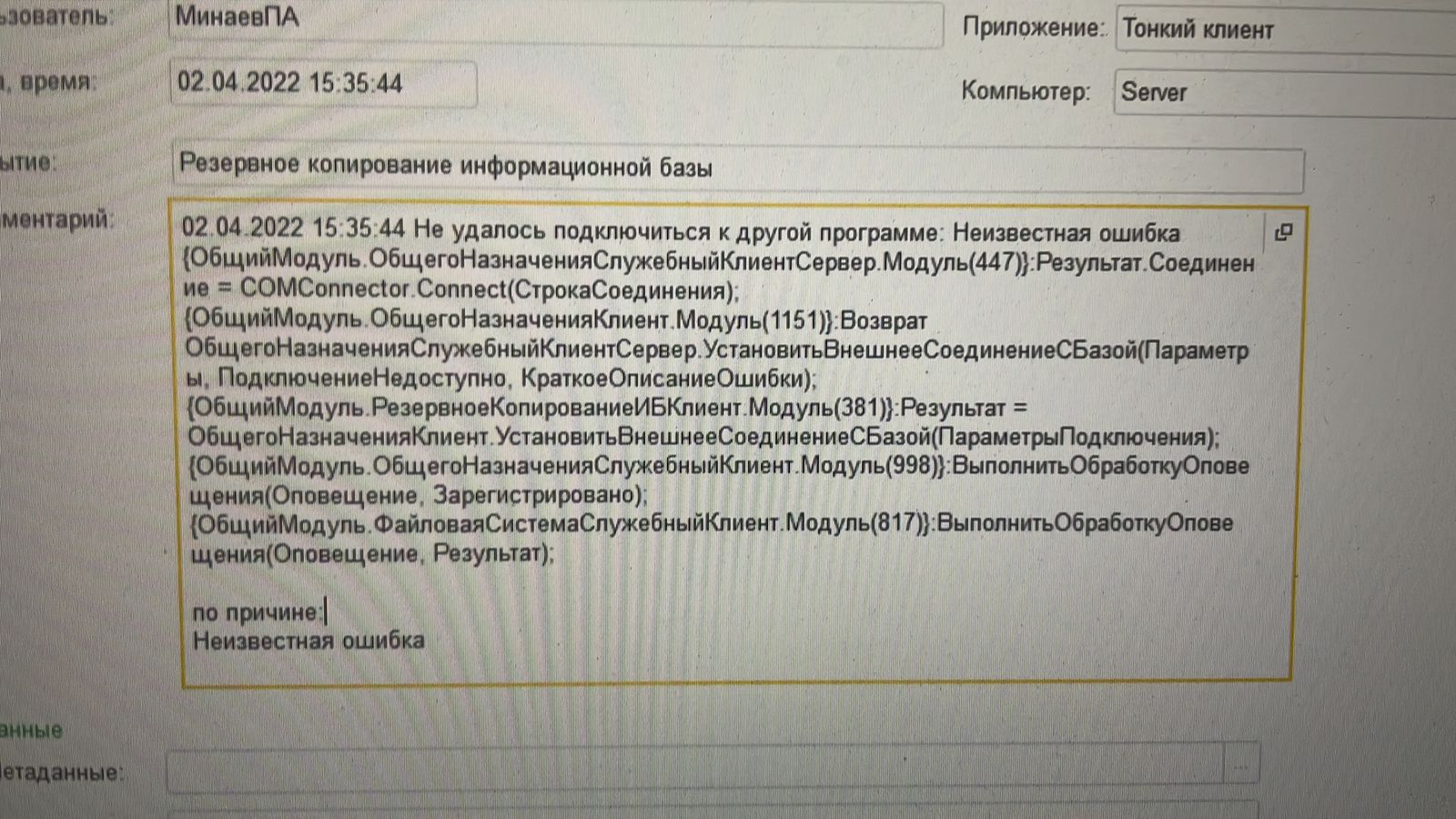 УТ и БП - ошибка при выгрузке резервной копии