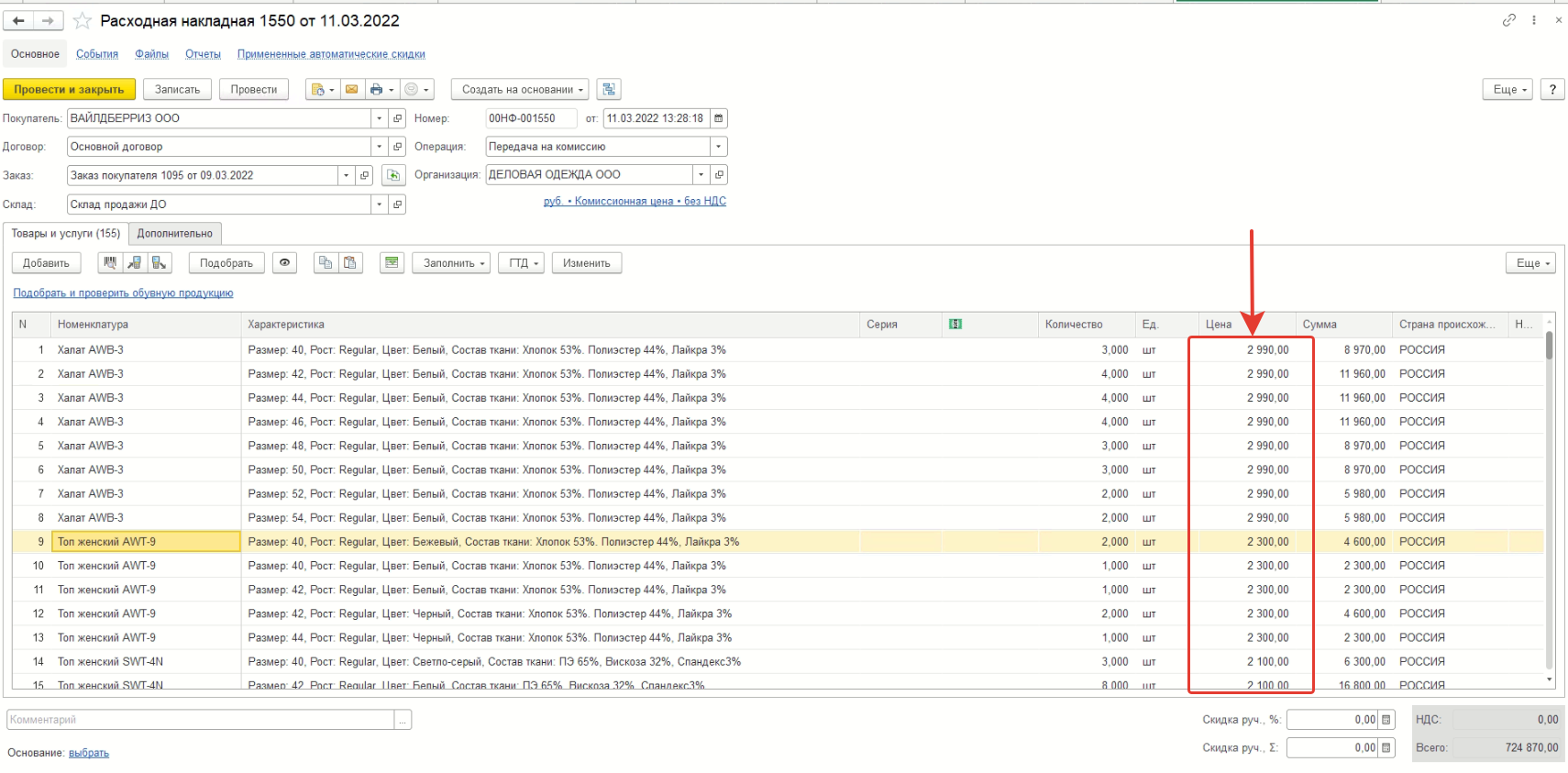 В отчет комиссионера, при загрузке данных с excel, есть колонка "Сумма передачи". В эту колонку, должна попадать цена, которая была указана в документе "Расходная накладная".