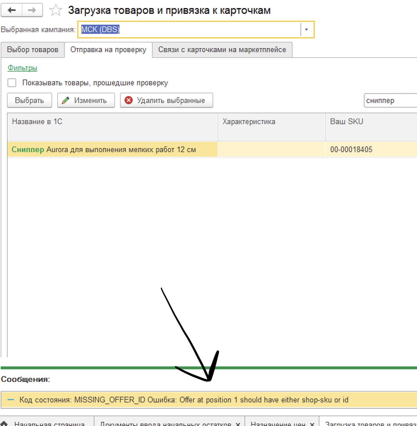 Проблема с загрузкой каталога. Не получается связать карточку товара из нашей учетной системы 1С через готовый модуль для 1С от Яндекс.Маркет. Выдает ошибку при загрузке карточек в магазине DBS. При других схемах проблем нет (FBS или FBS Express). Работаем в УТ 11. Во ВЛОЖЕНИИ МОЖНО УВИДЕТЬ НАЗВАНИЕ ОШИБКИ. Исполнителя подключим через AnyDesk. Будем признательны за скорое решение вопроса!