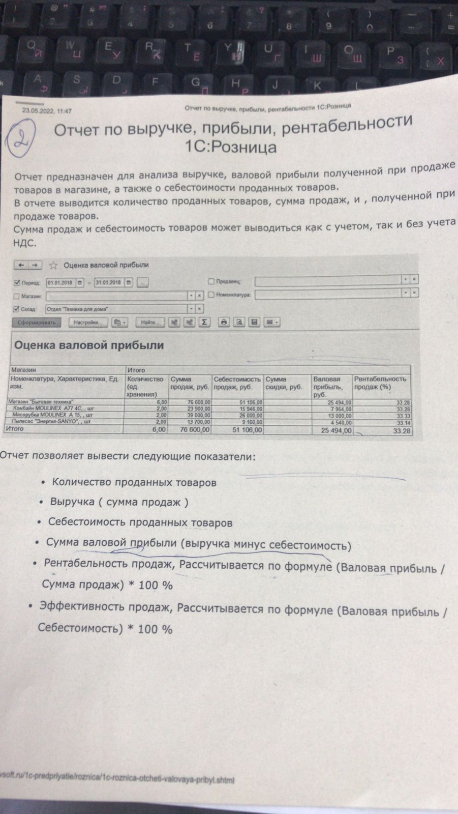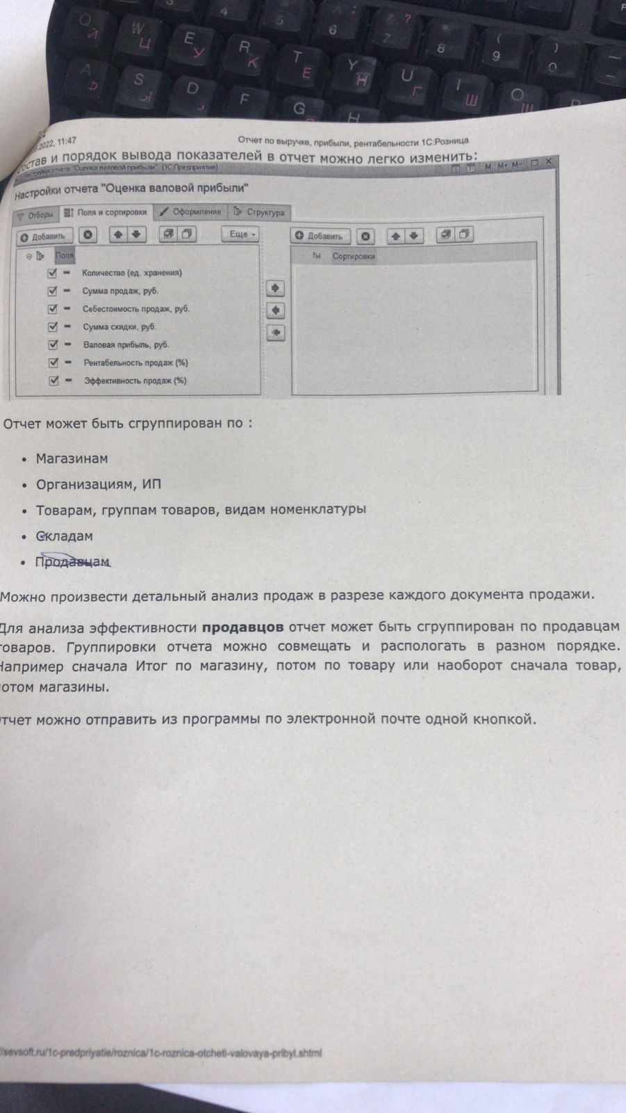 1С Розница 2.3 - отчет