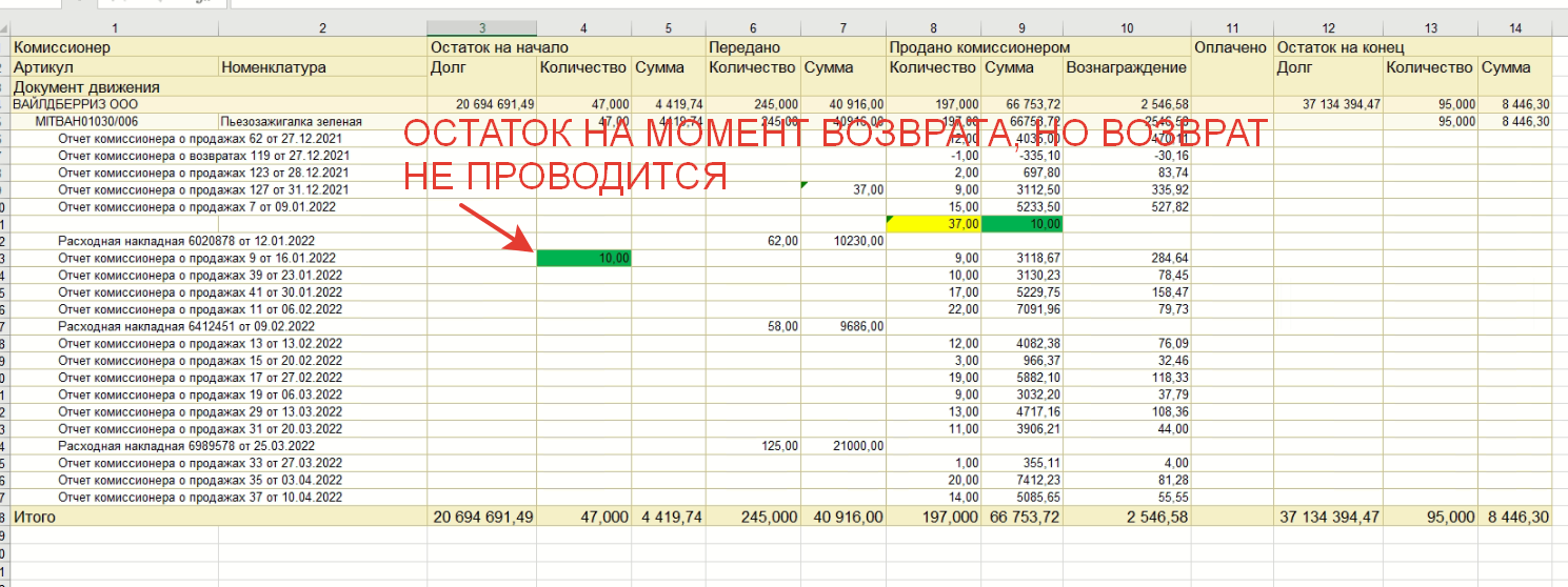 УНФ 1.6 облачная - не проводится возврат комиссионера