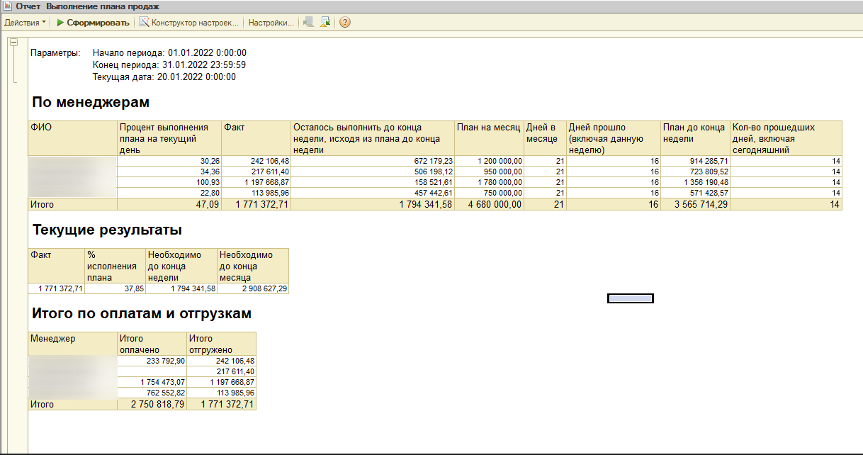 Требуется доработка простенького отчета "Выполнение плана продаж" (скрин отчета во вложении).