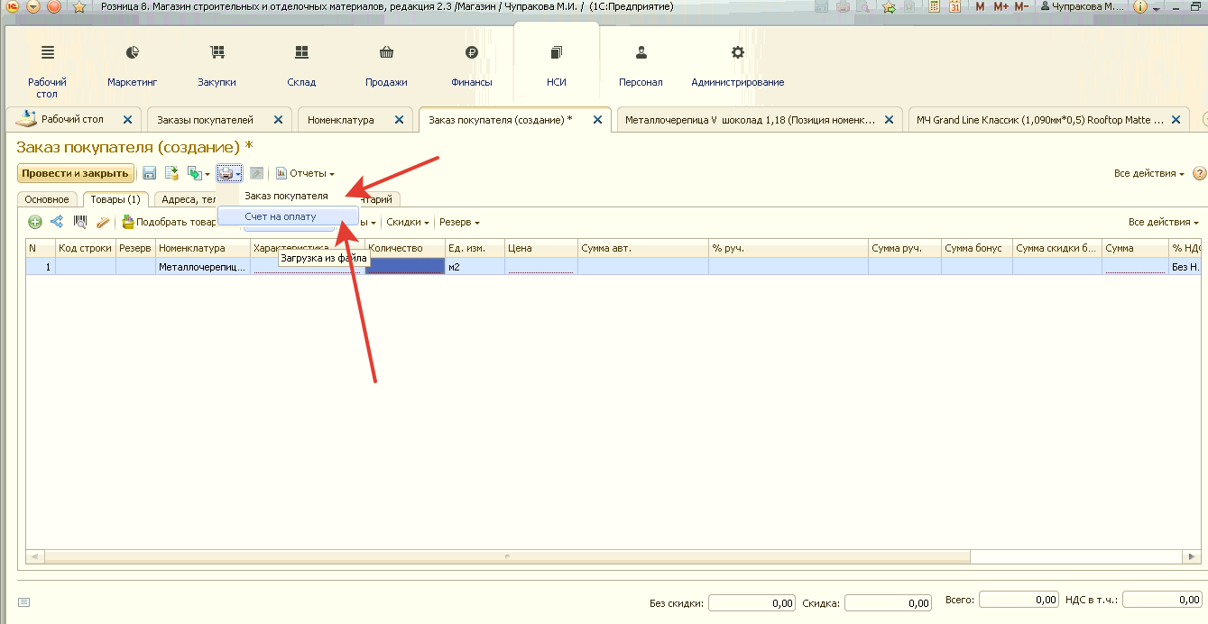 Розница 8 (2.3.9.42) - реализовать колонки в заказе и печатную форму