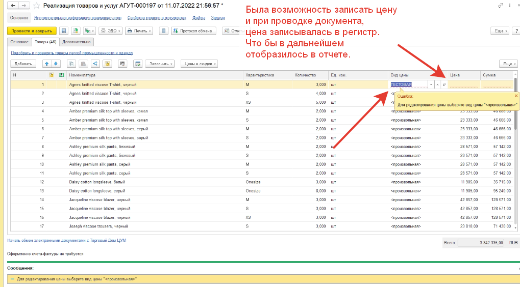 УТ 11.4 - сделать вид цены, который фиксирует цену сразу через реализацию