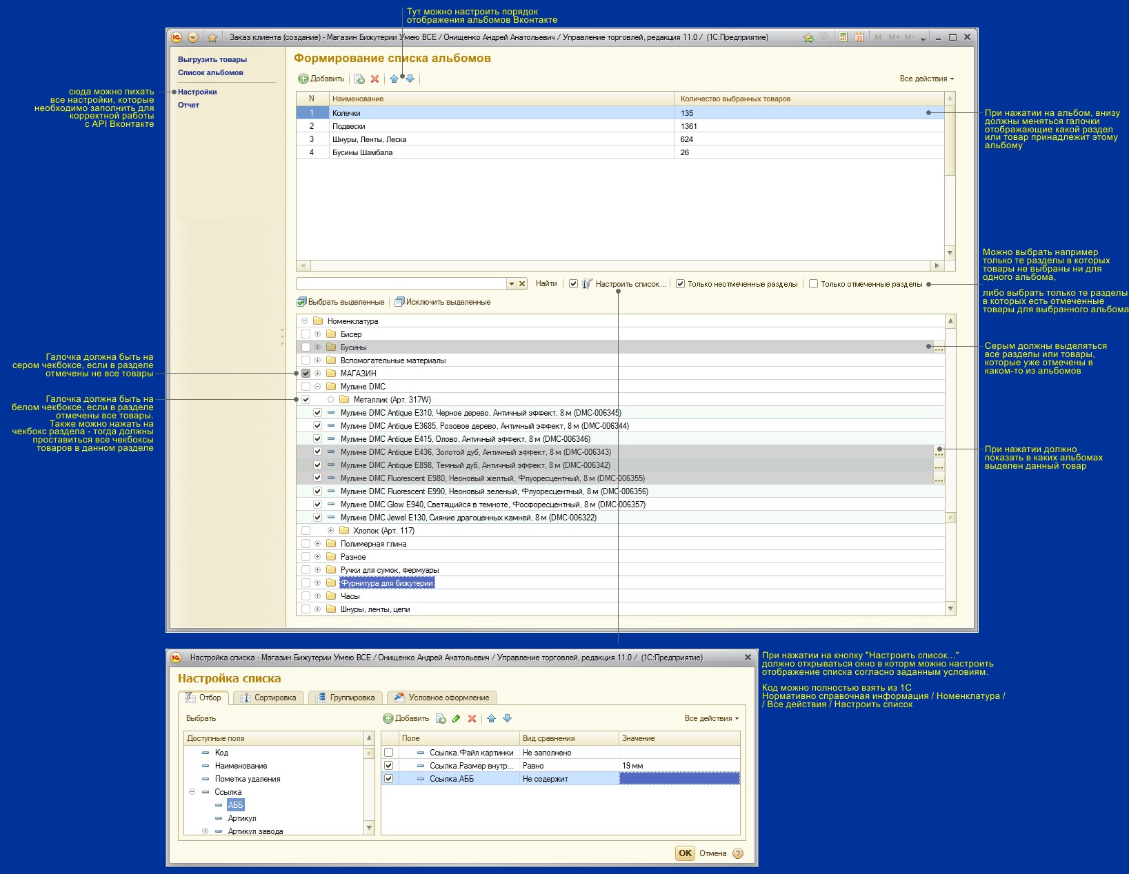 3. Формировать список альбомов и выбирать в какой альбом какие товары или разделы должны попадать. - см. картинку №2