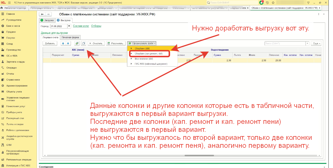 1С ЖКХ - доработать обработку по загрузке/выгрузке