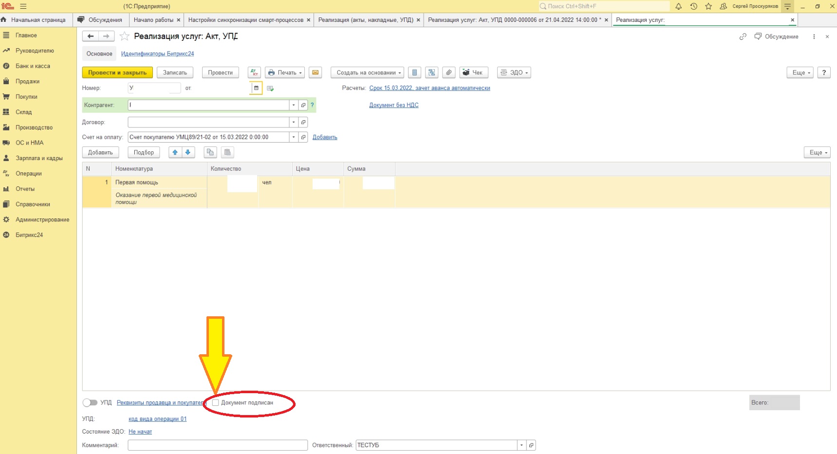 Задача: на основании счета покупателю создается реализация, необходимо передать статус реализации "Документ подписан" в дополнительный реквизит счета (булево значение) на основании которого была создана реализация.