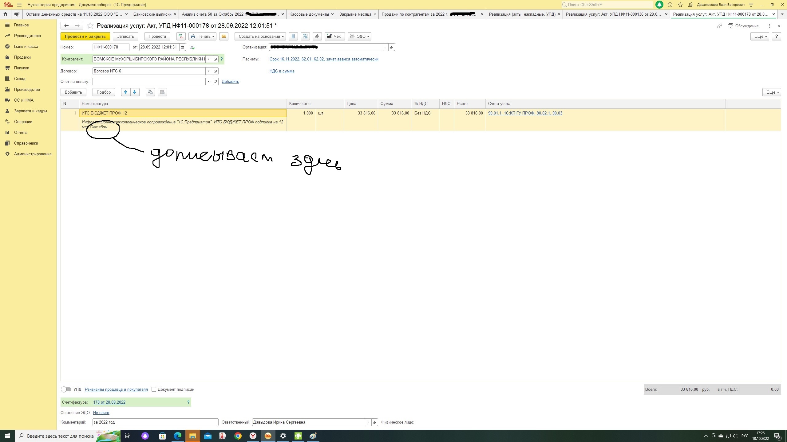 5 ИТС мы напишем начало месяца обслуживания в номенклатуре ИТС ПРОФ 12 или КП ПРОФ 12 или там 6 мес или 3 мем или 1 мес в самой номенклатуре не будет начало месяца а просто в акте дописывает начало месяца. Смысл такой что мы отписываем акты на годовое облуживание ИТС мне надо видеть когда заканчивается годовое или другой срок обслуживания есть ли перерыв между началом и концом или ничего нет