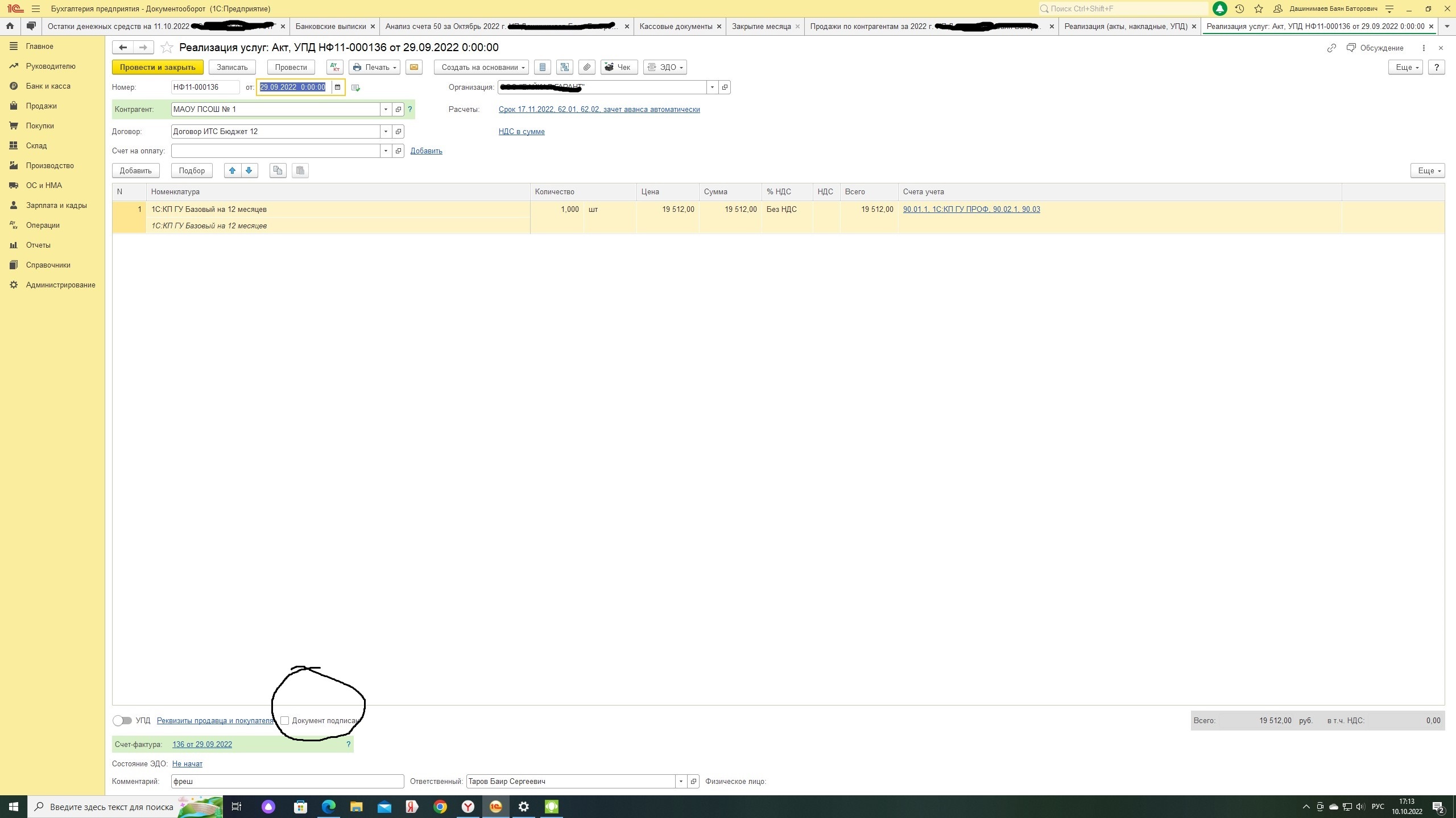 4.Также обыграть галочку документ подписан так же ка с эдо это те акты которые были не по эдо а по обычной почте